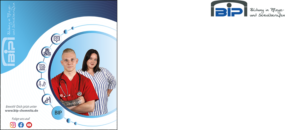 Im BIP Chemnitz könnt ihr Ausbildungen in der Krankenpflegehilfe, zur Pflegefachkraft, als Sozialassistent/in oder zum/zur Erzieher/in beginnen und lernen, wie ihr Fachwissen, Empathie, Kreativität und Engagement in den Berufsalltag integriert.