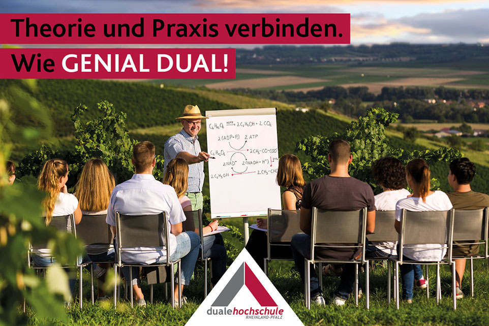 In Rheinland-Pfalz bieten alle sieben staatlichen Hochschulen für angewandte Wissenschaften insgesamt rund 90 duale Studiengänge an. Sie bieten praxisorientierte Forschung und Lehre auf höchstem Niveau, sehr gute Betreuung der Studierenden und einen Studienalltag auf einem familiären Campus.