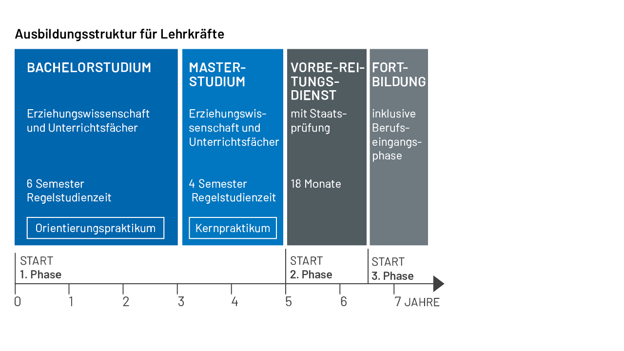 Als Lehrkraft bist du Expertin bzw. Experte für das Lehren und Lernen an der Schule und nimmst außerdem Erziehungs-, Beratungs- und Bewertungsaufgaben wahr. Du entwickelst deine Kompetenzen während der Zeit deiner Berufstätigkeit kontinuierlich weiter und beteiligst dich an Aktivitäten zur Schulentwicklung. Um Lehrerin oder Lehrer zu werden, machst du einen Bachelor- und einen Masterabschluss in einem Lehramtsstudium, wobei du Erziehungswissenschaft und Unterrichtsfächer studierst.